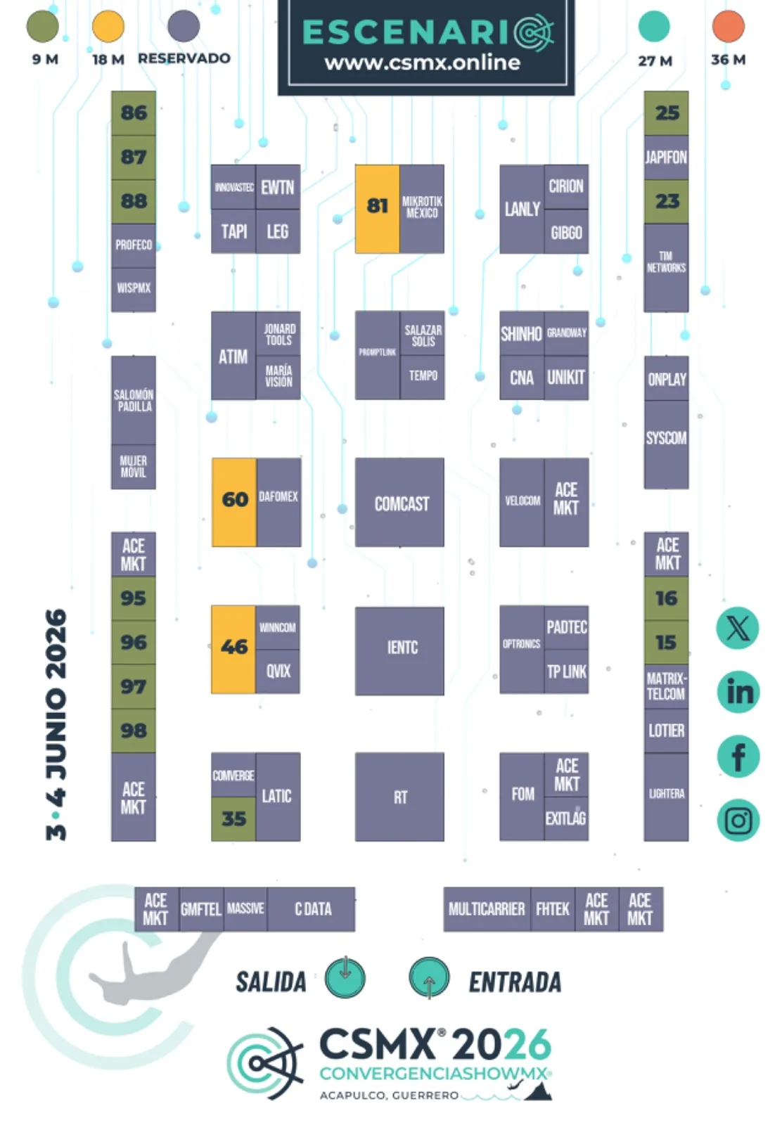 - Perfil de la empresa (logotipo y sitio web) en Pestaña de expositores de página web de CSMX2026.